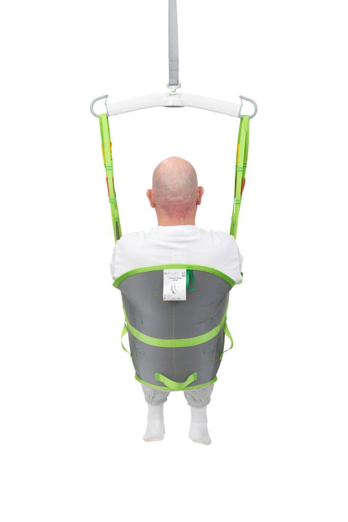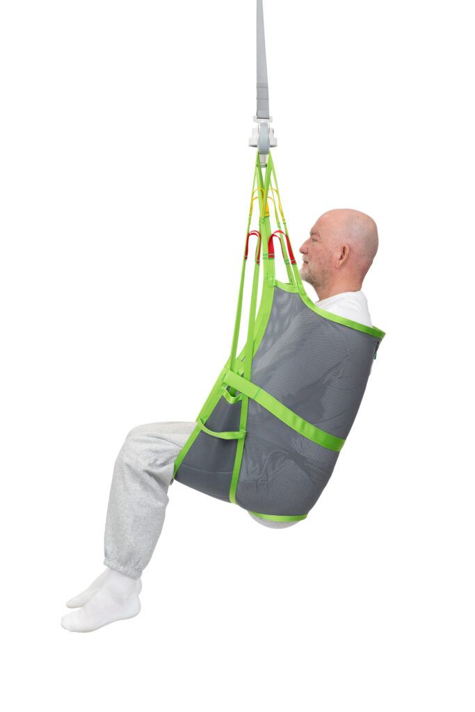 De Amputee Sling is ontworpen om veilige transfers uit te voeren voor mensen met een dubbele of enkelzijdige beenamputatie. De tilband is ook geschikt voor patiënten die de neiging hebben om uit een standaard tilband te glijden of patiënten met heupproblemen. De beenslips zijn over elkaar heen gevouwen waardoor er een nauwe opening ontstaat, indien gewenst kunnen ze ook om de benen heen.